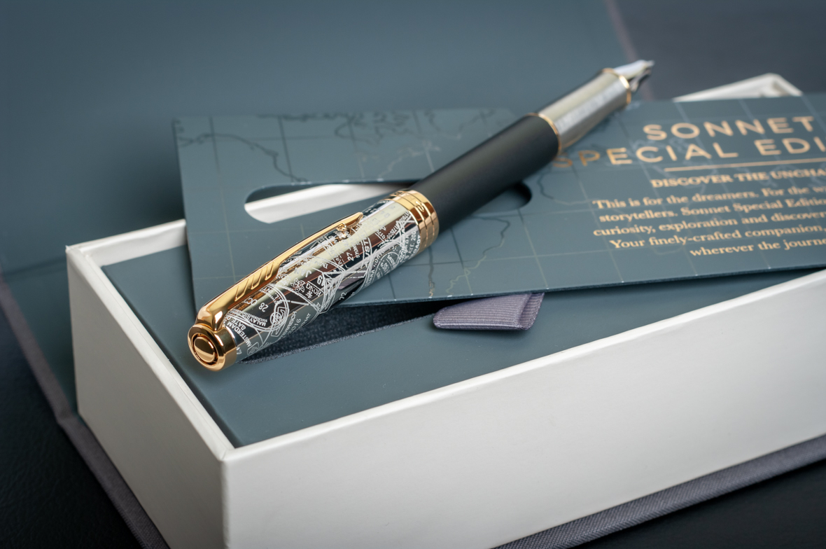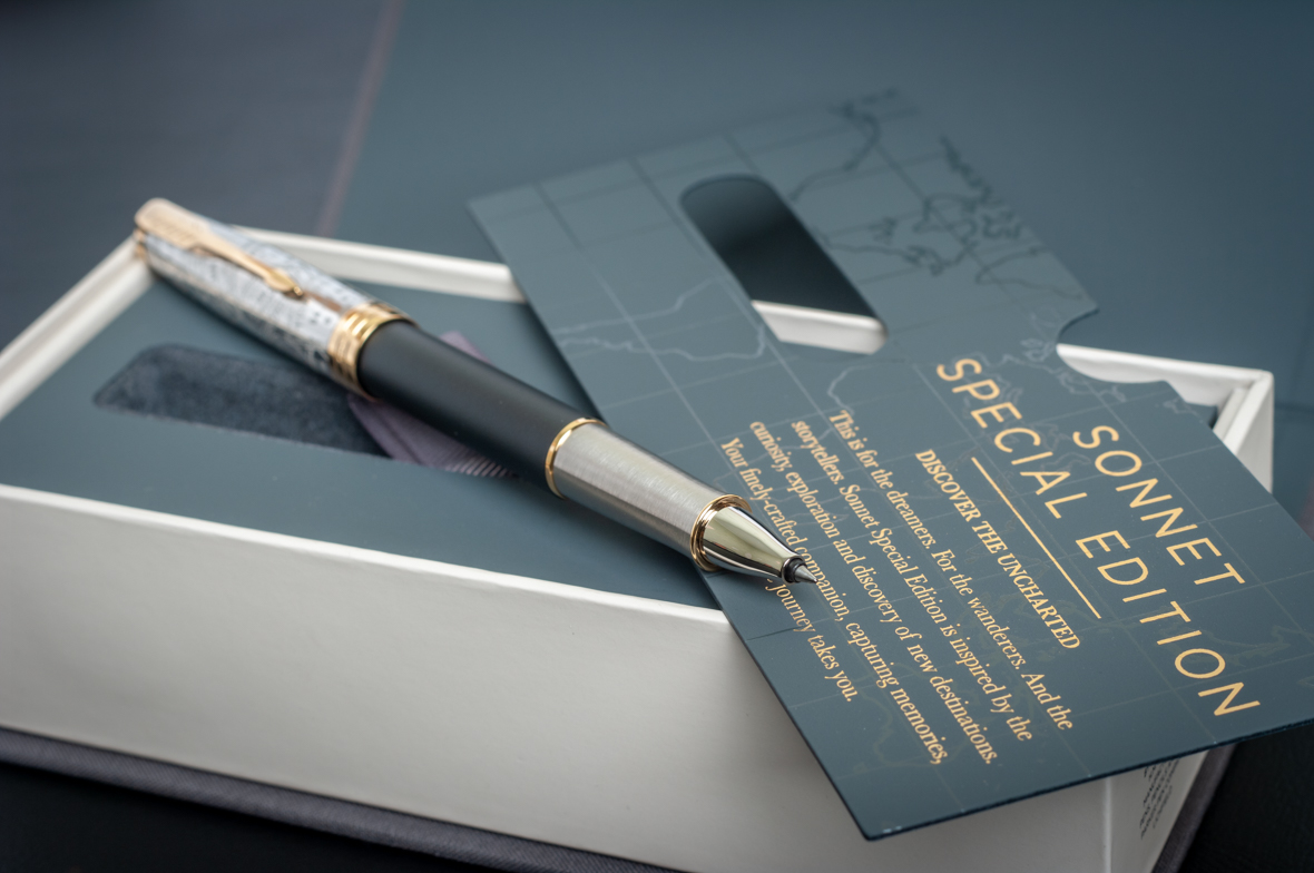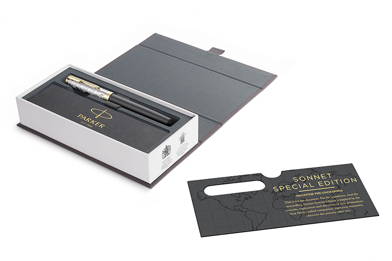 Ручка роллер Parker Sonnet Special Edition 2018 Impression Matte Black GT от официального дилера Parker в Кургане. Вы можете дополнительно заказать гравировку, которая подчеркнет Вашу оригинальность и придаст памятность статусному подарку. Все ручки Паркер поставляются в фирменном футляре.
