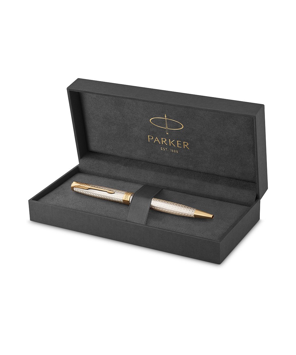 Ручка шариковая Parker Sonnet Premium Silver Mistral GT от официального дилера Parker в Кургане. Вы можете дополнительно заказать гравировку, которая подчеркнет Вашу оригинальность и придаст памятность статусному подарку. Все ручки Паркер поставляются в фирменном футляре.