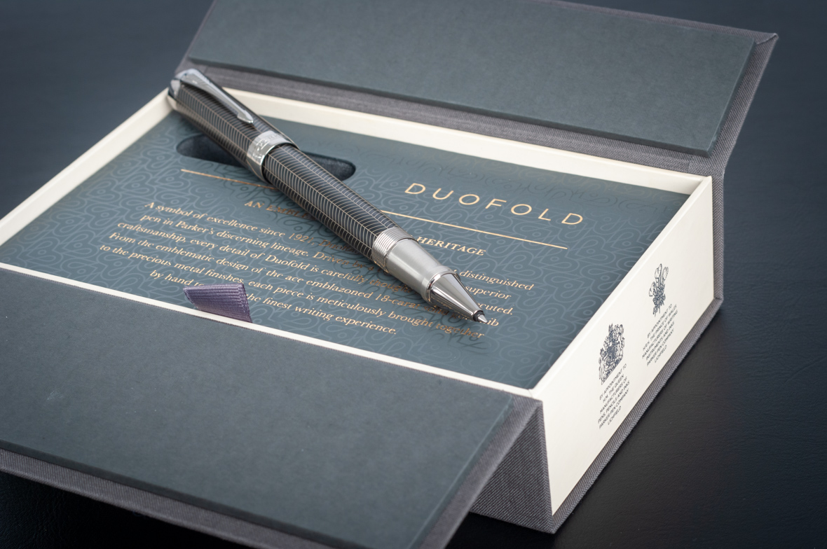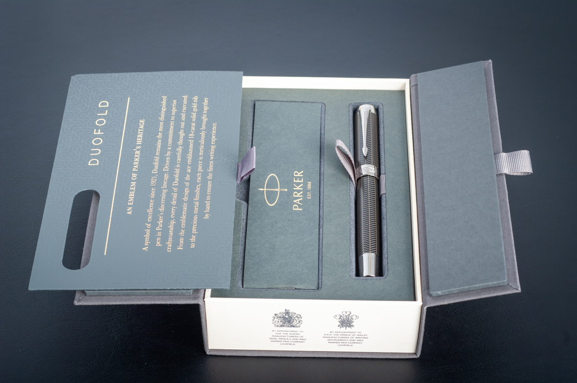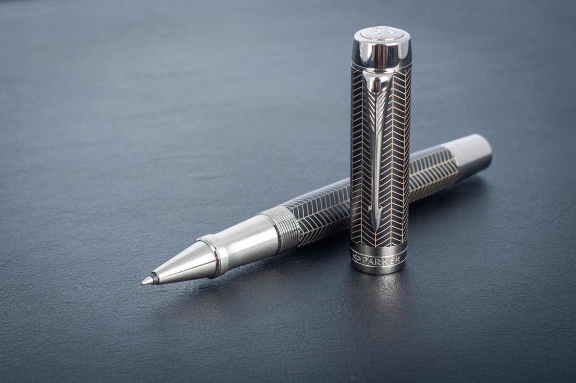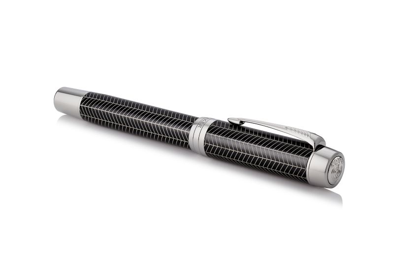 Ручка роллер Parker Duofold Prestige Centennial Black Chevron CT от официального дилера Parker в Кургане. Вы можете дополнительно заказать гравировку, которая подчеркнет Вашу оригинальность и придаст памятность статусному подарку. Все ручки Паркер поставляются в фирменном футляре.