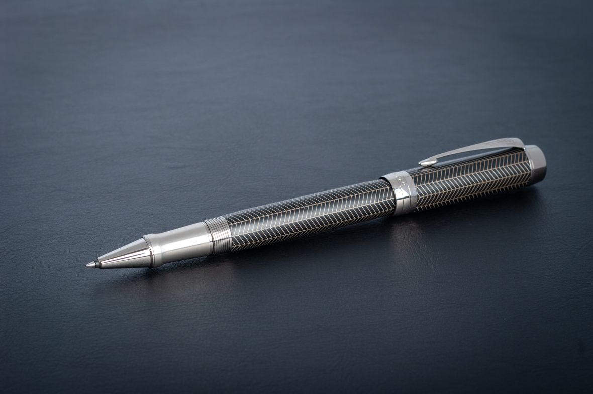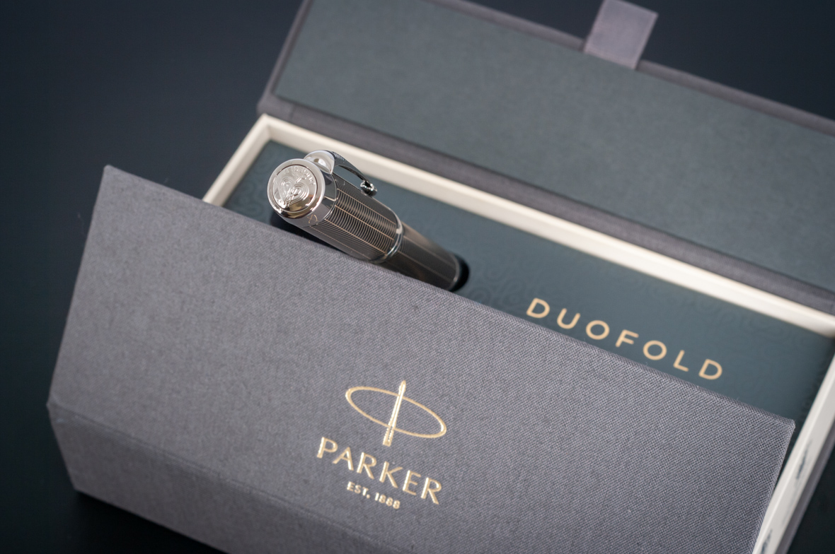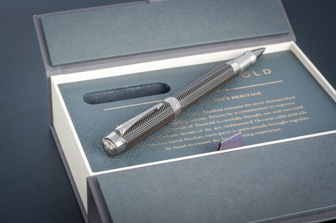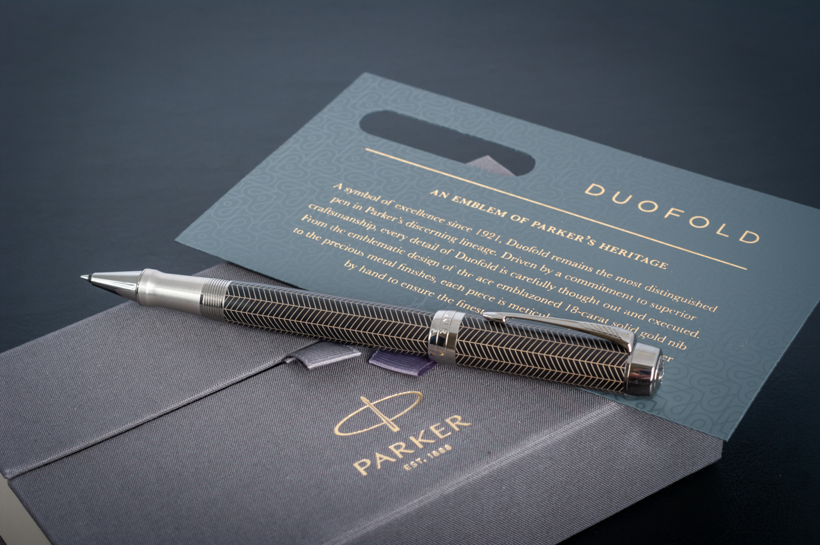 Ручка роллер Parker Duofold Prestige Centennial Black Chevron CT от официального дилера Parker в Кургане. Вы можете дополнительно заказать гравировку, которая подчеркнет Вашу оригинальность и придаст памятность статусному подарку. Все ручки Паркер поставляются в фирменном футляре.