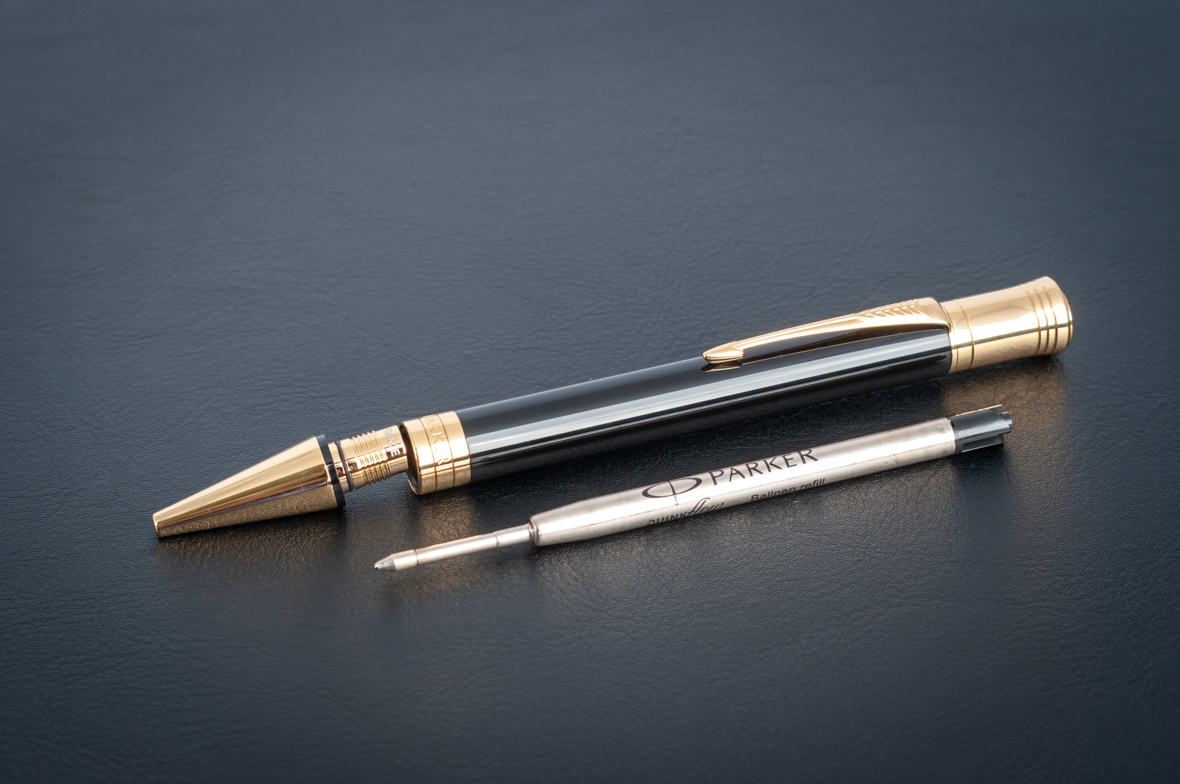Шариковая ручка Parker Duofold Classic Centennial Black GT от официального дилера Parker в Кургане. Вы можете дополнительно заказать гравировку, которая подчеркнет Вашу оригинальность и придаст памятность статусному подарку. Все ручки Паркер поставляются в фирменном футляре.